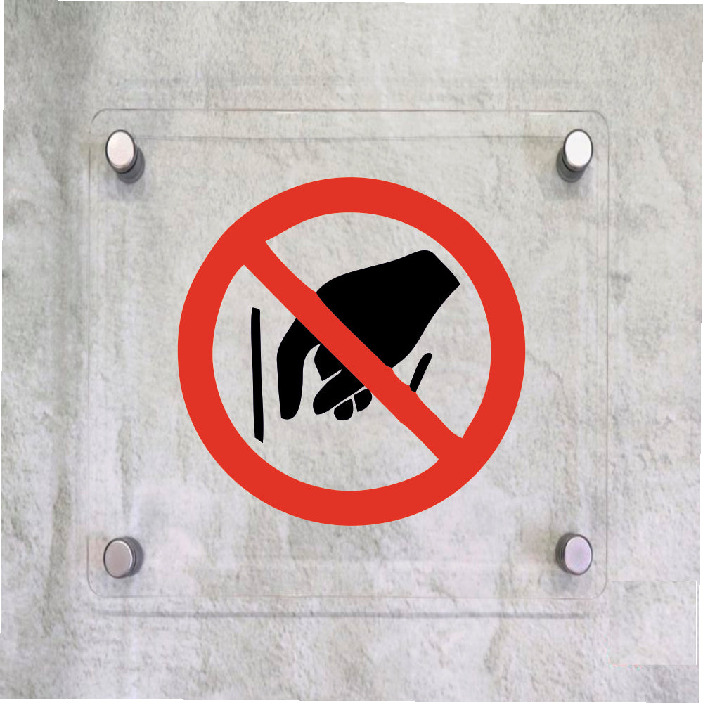 Global Targa Cartello in plexiglass Quadrato - SIMBOLO VIETATO INTRODURRE LE MANI - Con Distanziali in acciaio inox, Stampa UV