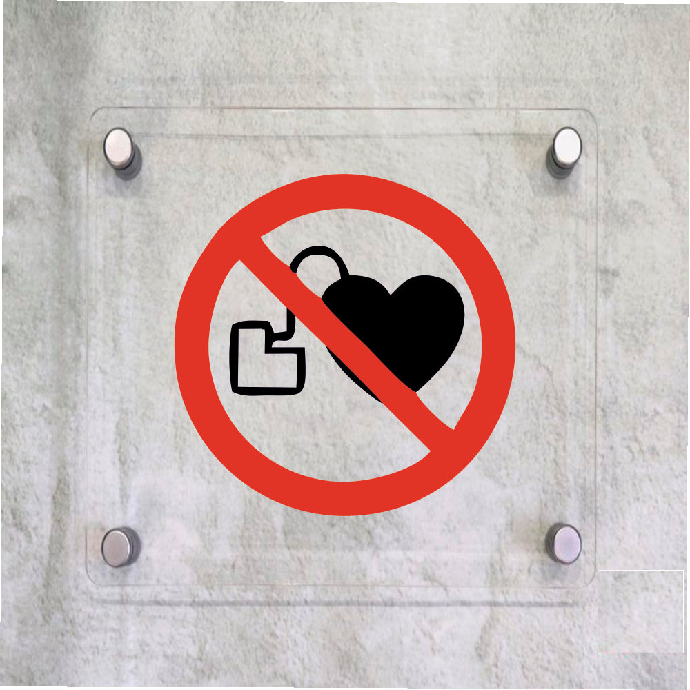 Global Targa Cartello in plexiglass Quadrato - SIMBOLO VIETATO L'ACCESSO AI PORTATORI DI PACE MAKER - Con Distanziali in acciaio inox, Stampa UV