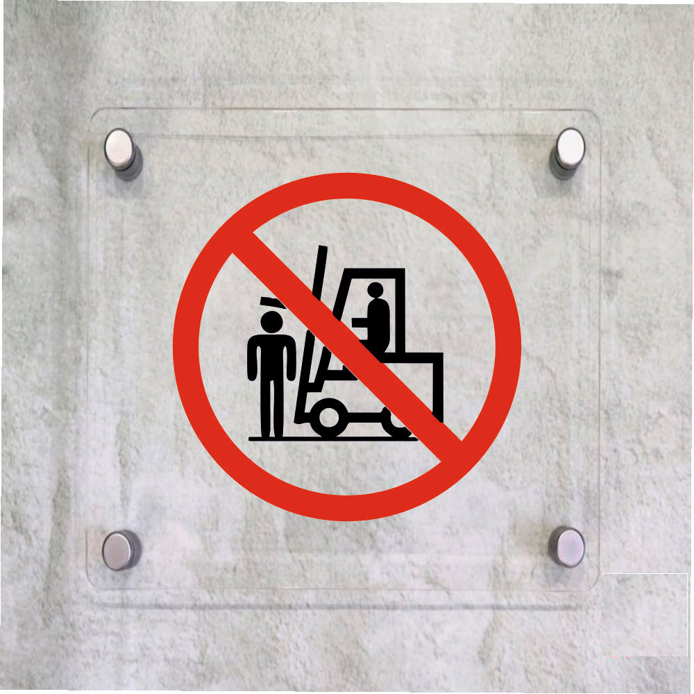 Global Targa Cartello in plexiglass Quadrato - SIMBOLO VIETATO SOSTARE SOTTO LE FORCHE - Con Distanziali in acciaio inox, Stampa UV