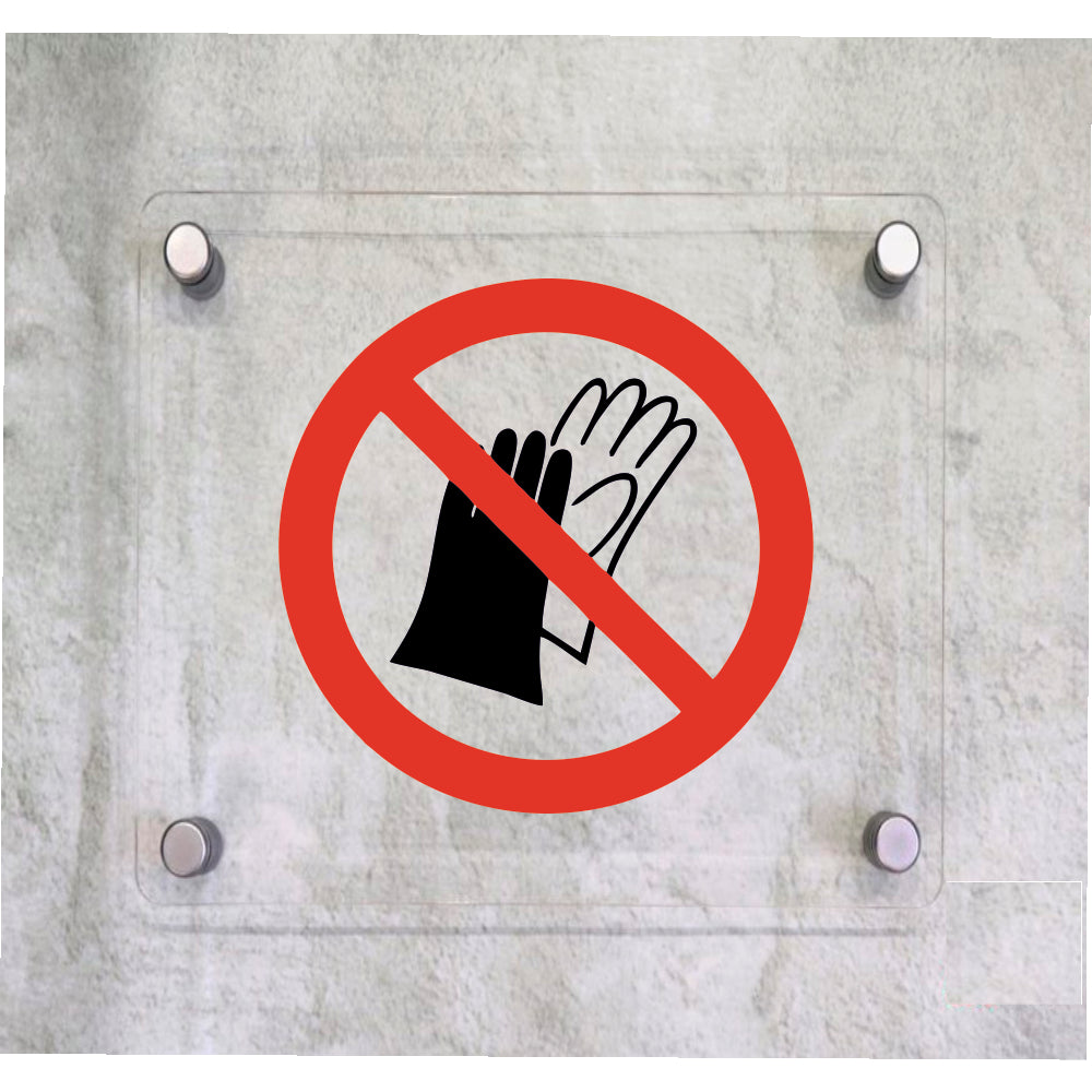 Global Targa Cartello in plexiglass Quadrato - VIETATO INDOSSARE I GUANTI - Con Distanziali in acciaio inox, Stampa UV