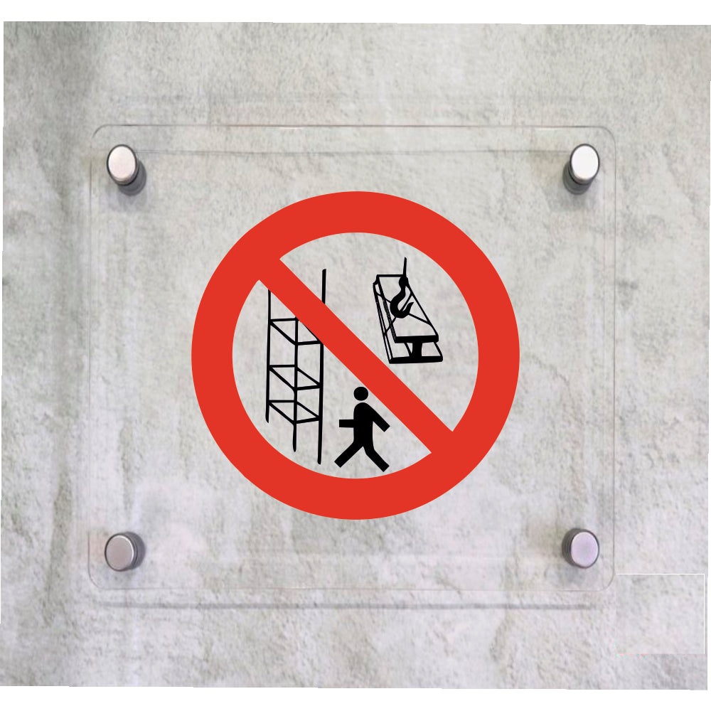 Global Targa Cartello in plexiglass Quadrato - VIETATO PASSARE SOTTO CARICHI SOSPESI - Con Distanziali in acciaio inox, Stampa UV