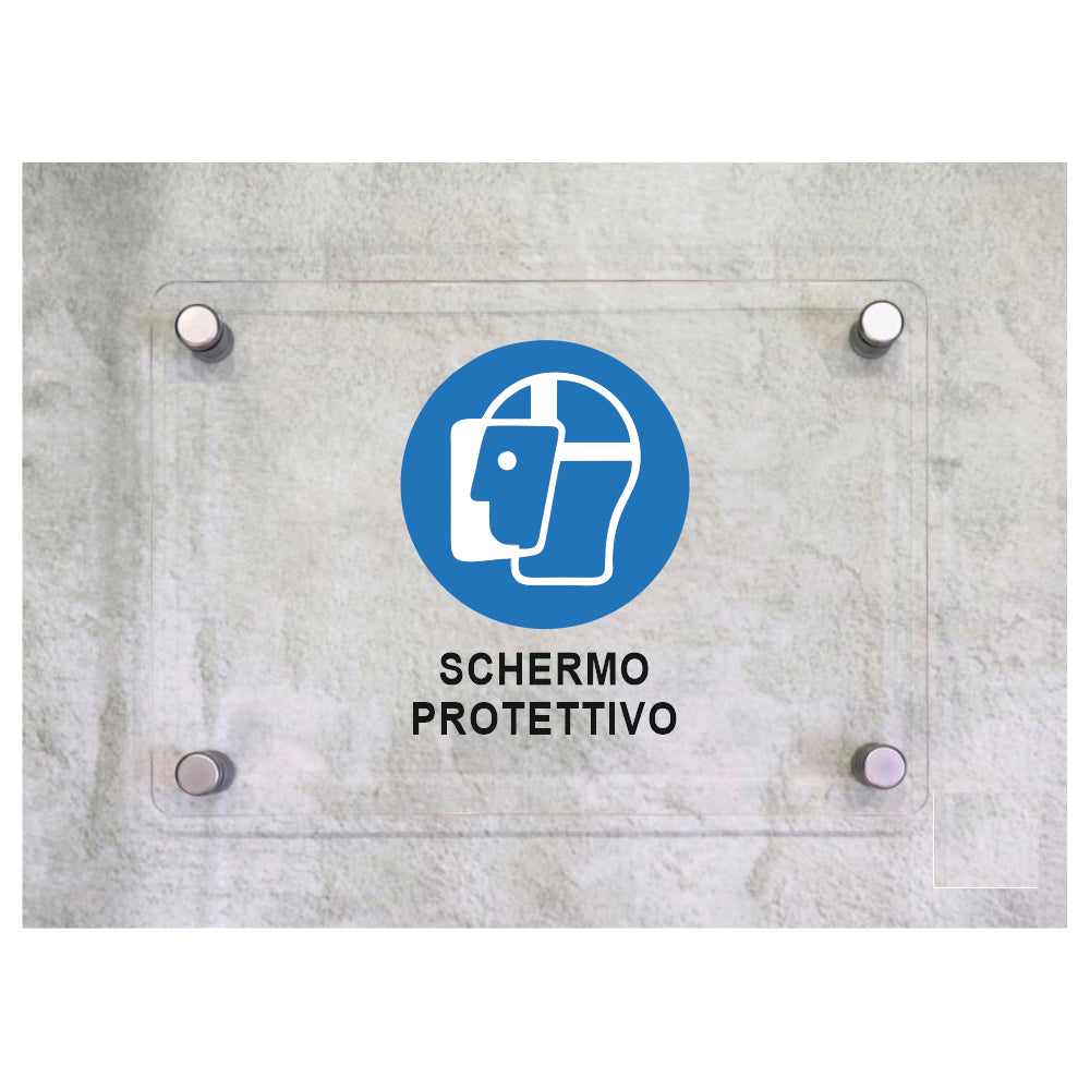 Global Targa Cartello in plexiglass - SCHERMO PROTETTIVO - Con Distanziali in acciaio inox, Stampa UV.