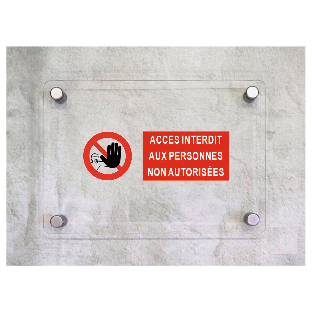 Global Targa Cartello in plexiglass UNI - ACCES INTERDIT AUX PERSONNES NON AUTORISEES - Con Distanziali in acciaio inox, Stampa UV