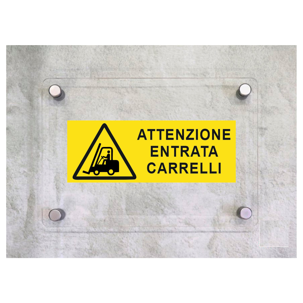 Global Targa Cartello in plexiglass UNI - ATTENZIONE ENTRATA CARRELLI - Con Distanziali in acciaio inox, Stampa UV