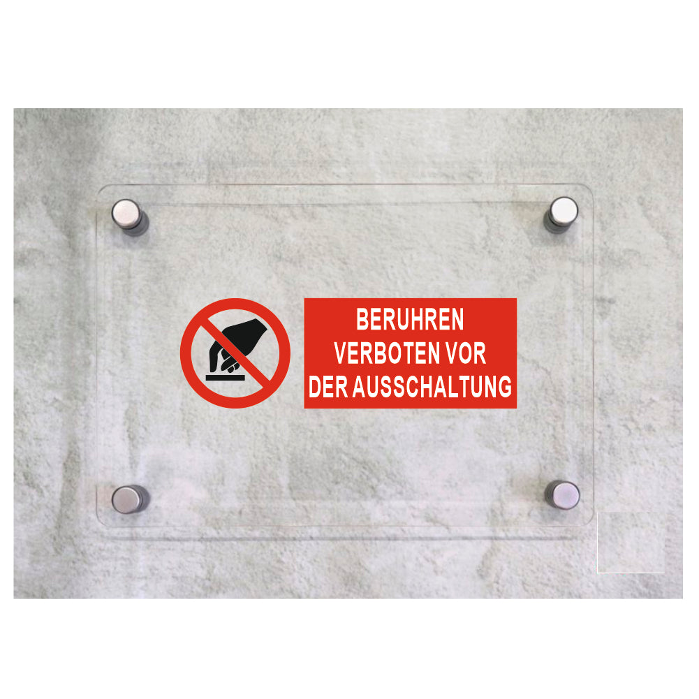 Global Targa Cartello in plexiglass UNI - BERUHREN VERBOTEN VOR DER AUSSCHALTUNG ORIZZONTALE - Con Distanziali in acciaio inox, Stampa UV