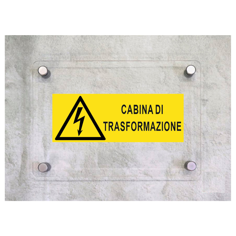 Global Targa Cartello in plexiglass UNI - CABINA DI TRASFORMAZIONE - Con Distanziali in acciaio inox, Stampa UV
