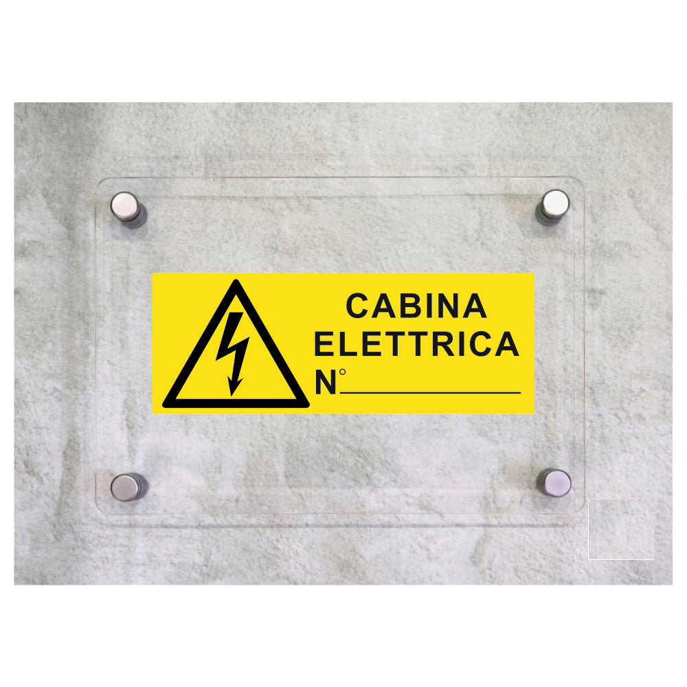 Global Targa Cartello in plexiglass UNI - CABINA ELETTRICA N___ - Con Distanziali in acciaio inox, Stampa UV