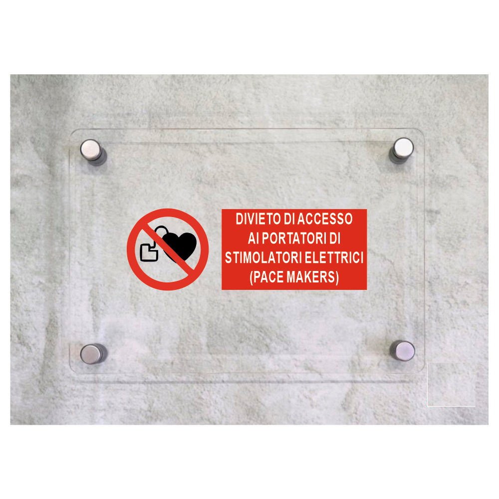 Global Targa Cartello in plexiglass UNI - DIVIETO DI ACCESSO AI PORTATORI DI STIMOLATORI ORIZZONTALE - Con Distanziali in acciaio inox, Stampa UV