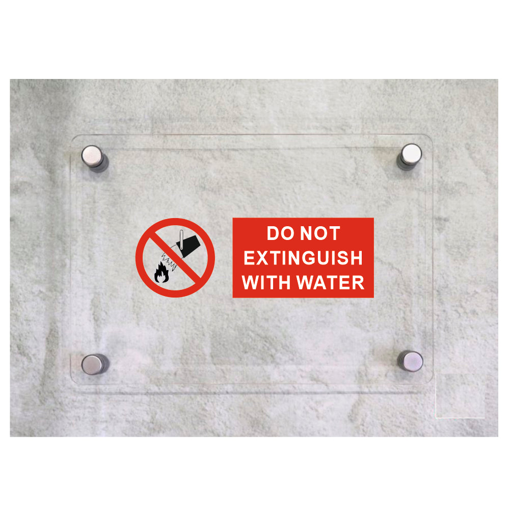 Global Targa Cartello in plexiglass UNI - DO NOT EXTINGUISH WITH WATER ORIZZONTALE - Con Distanziali in acciaio inox, Stampa UV