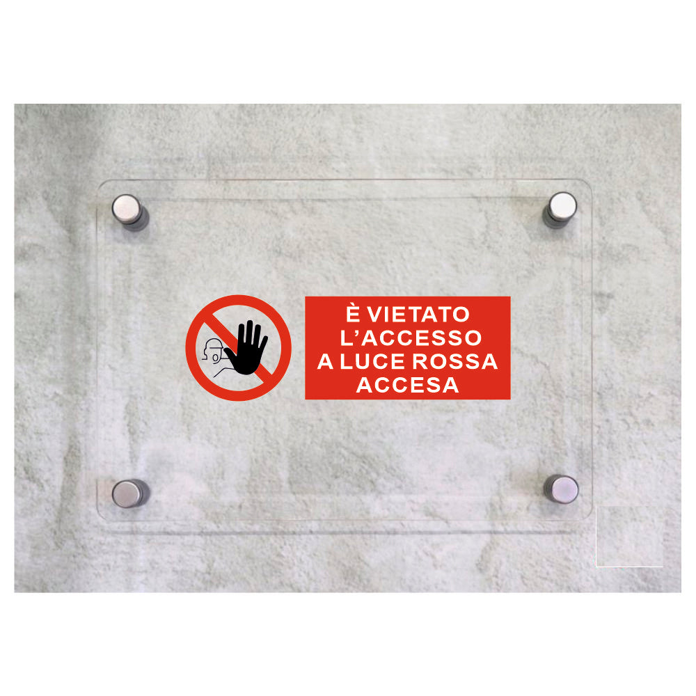Global Targa Cartello in plexiglass UNI - E' VIETATO L'ACCESSO A LUCE ROSSA ACCESA - Con Distanziali in acciaio inox, Stampa UV