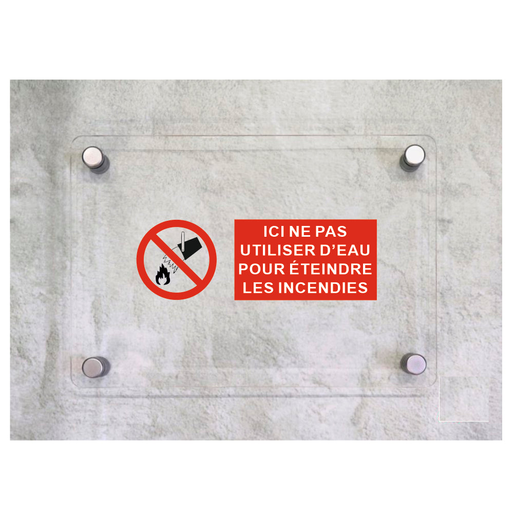 Global Targa Cartello in plexiglass UNI - ICE NE PAS UTILISER D'EAU POUR ETEINDRE LES INCENDIES ORIZZONTALE - Con Distanziali in acciaio inox, Stampa UV