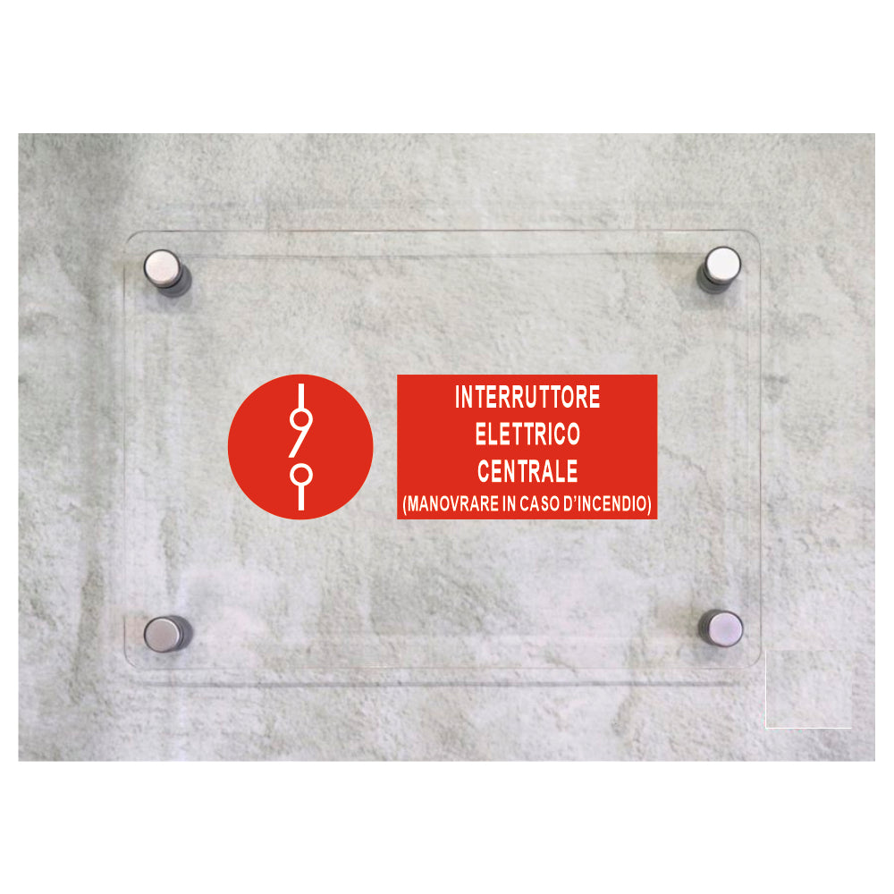 Global Targa Cartello in plexiglass UNI - INTERRUTTORE ELETTRICO CENTRALE ORIZZONTALE - Con Distanziali in acciaio inox, Stampa UV
