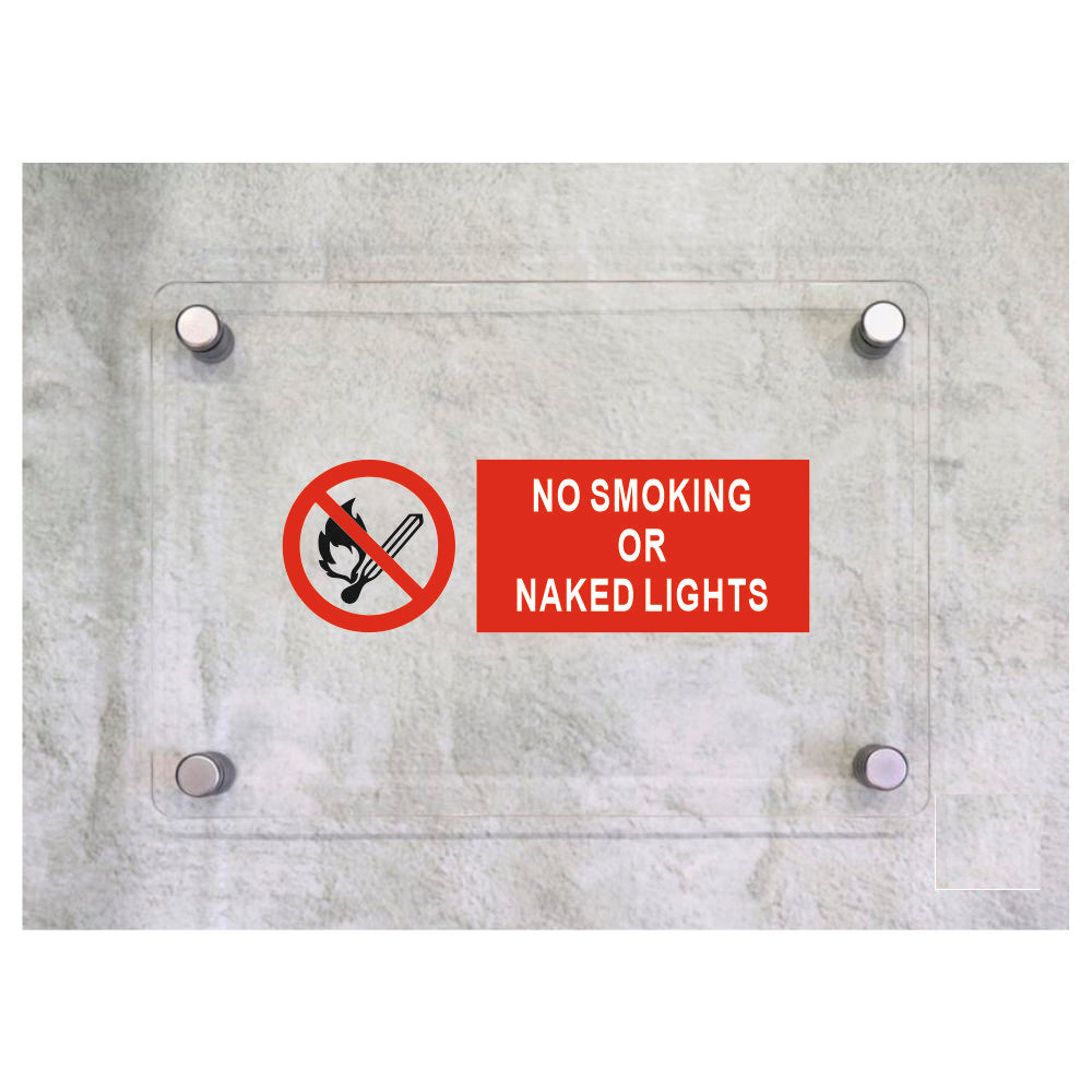 Global Targa Cartello in plexiglass UNI - NO SMOKING OR NAKED LIGHTS - Con Distanziali in acciaio inox, Stampa UV