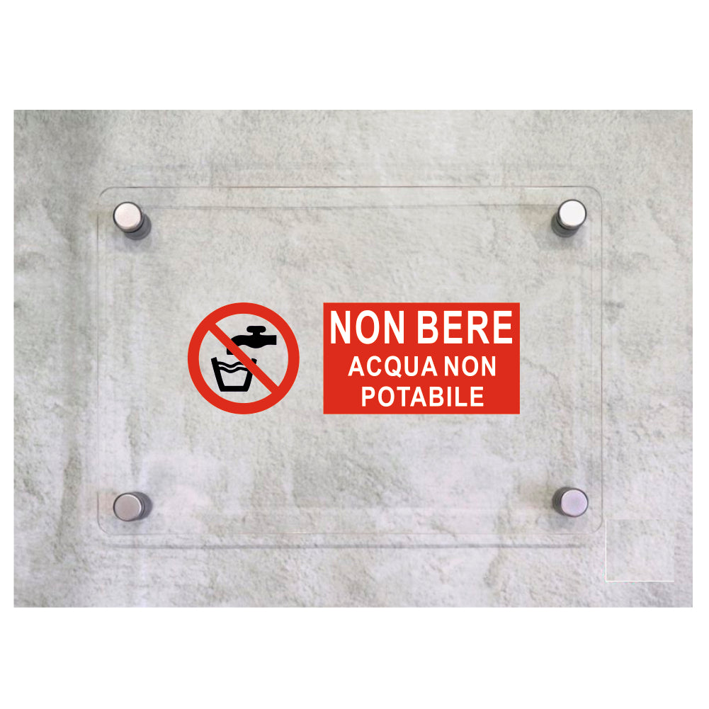 Global Targa Cartello in plexiglass UNI - NON BERE - ACQUA NON POTABILE ORIZZONTALE - Con Distanziali in acciaio inox, Stampa UV