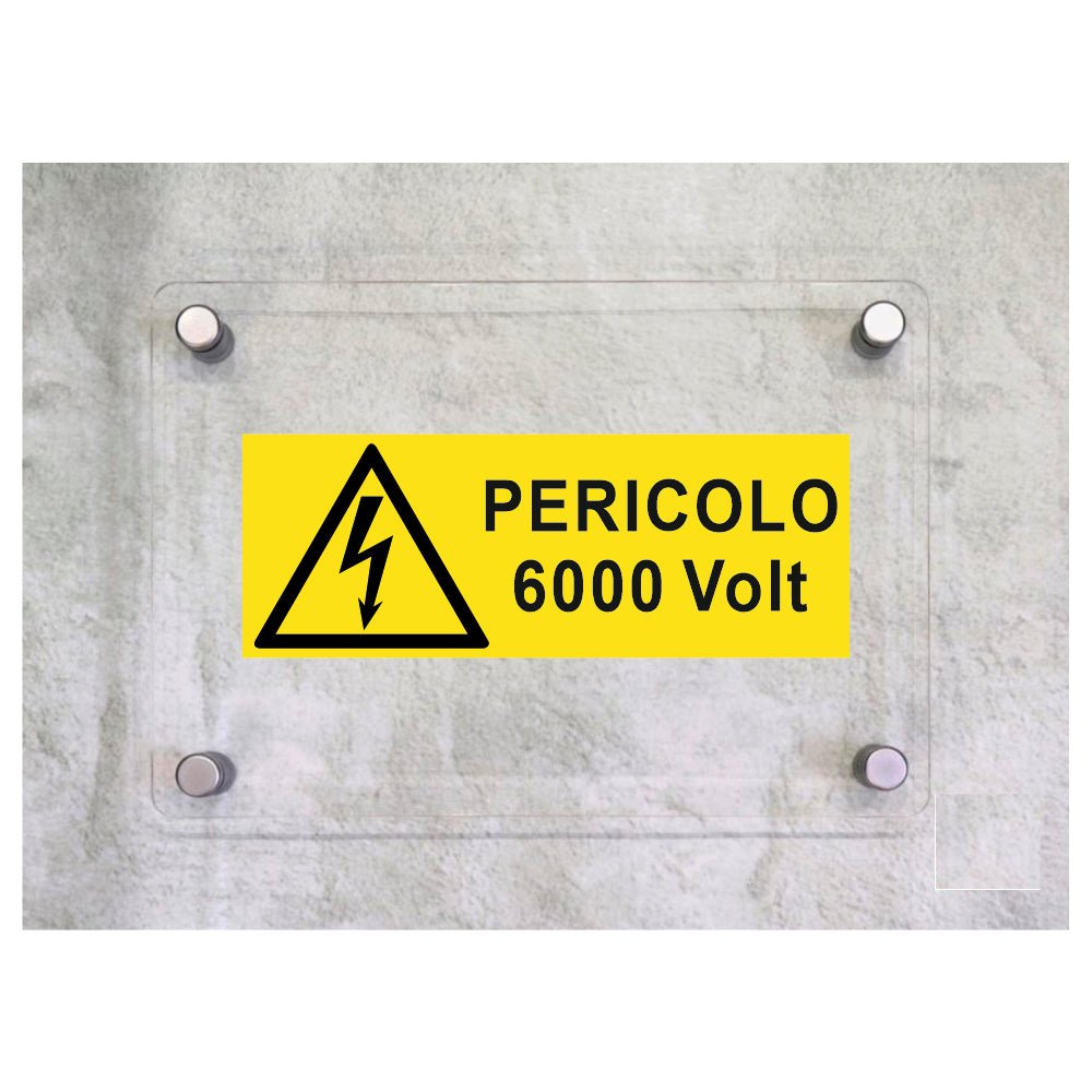 Global Targa Cartello in plexiglass UNI - PERICOLO 6000 VOLT - Con Distanziali in acciaio inox, Stampa UV