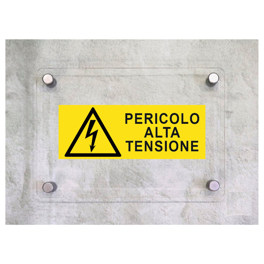 Global Targa Cartello in plexiglass UNI - PERICOLO ALTA TENSIONE - Con Distanziali in acciaio inox, Stampa UV
