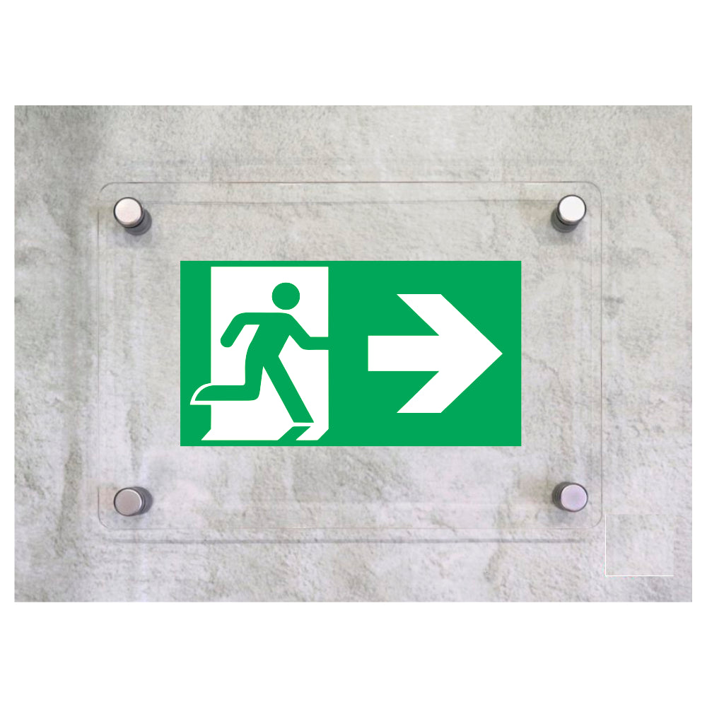 Global Targa Cartello in plexiglass UNI - USCITA DI EMERGENZA A DESTRA - Con Distanziali in acciaio inox, Stampa UV