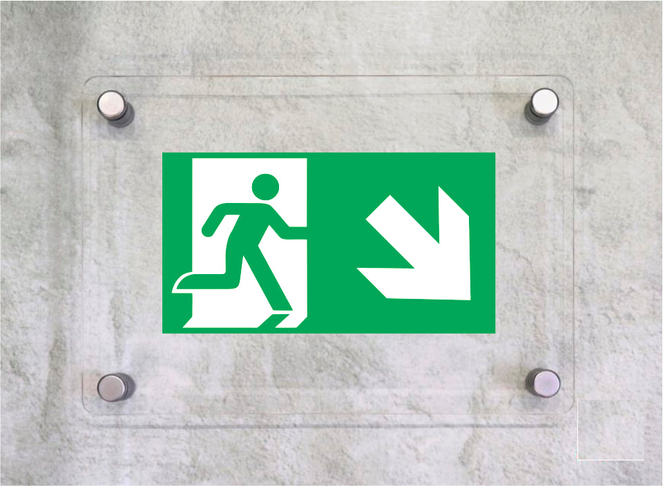 Global Targa Cartello in plexiglass UNI - USCITA DI EMERGENZA DISCESA DESTRA - Con Distanziali in acciaio inox, Stampa UV
