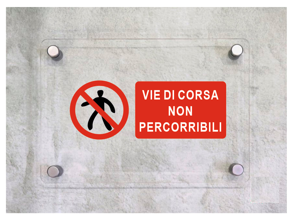 Global Targa Cartello in plexiglass UNI - VIE DI CORSA NON PERCORRIBILI - Con Distanziali in acciaio inox, Stampa UV