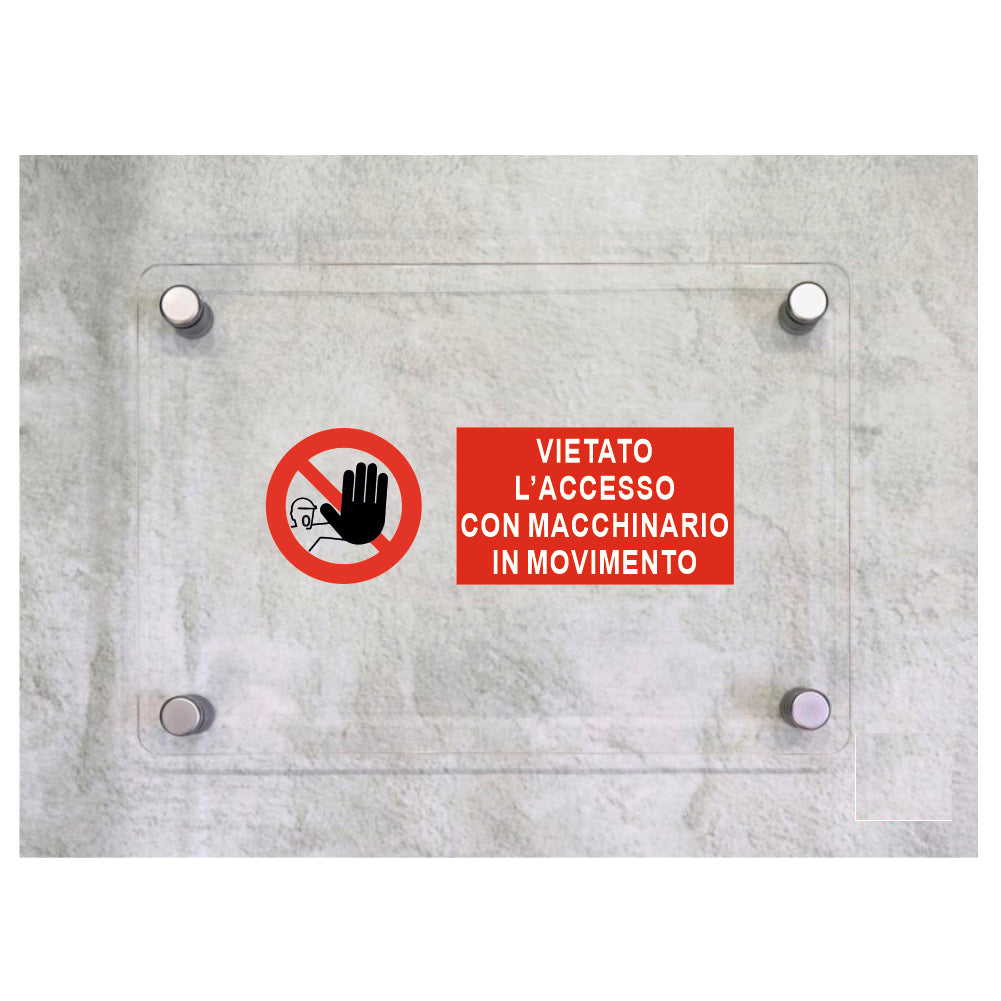 Global Targa Cartello in plexiglass UNI - VIETATO L'ACCESSO CON MACCHINARIO IN MOVIMENTO ORIZZONTALE - Con Distanziali in acciaio inox, Stampa UV