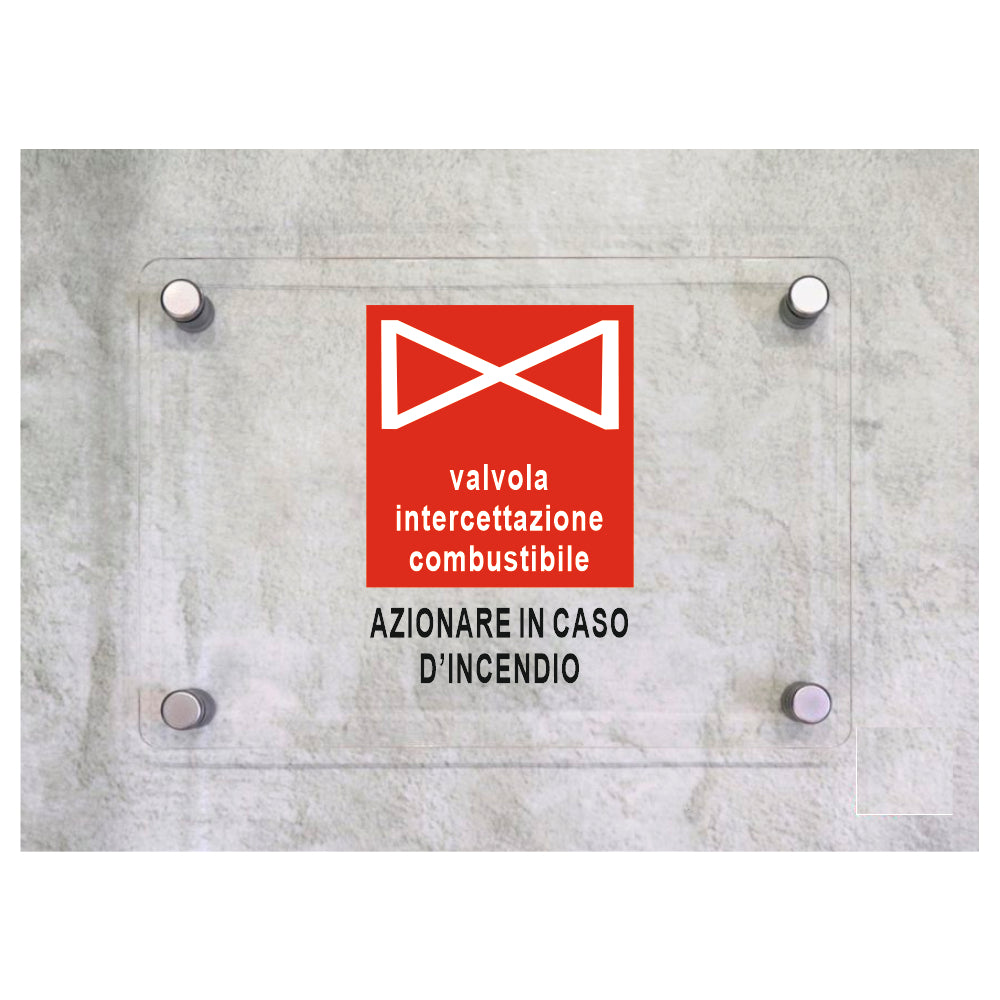 Global Targa Cartello in plexiglass - VALVOLA INTERCETTAZIONE COMBUSTIBILE - Con Distanziali in acciaio inox, Stampa UV.