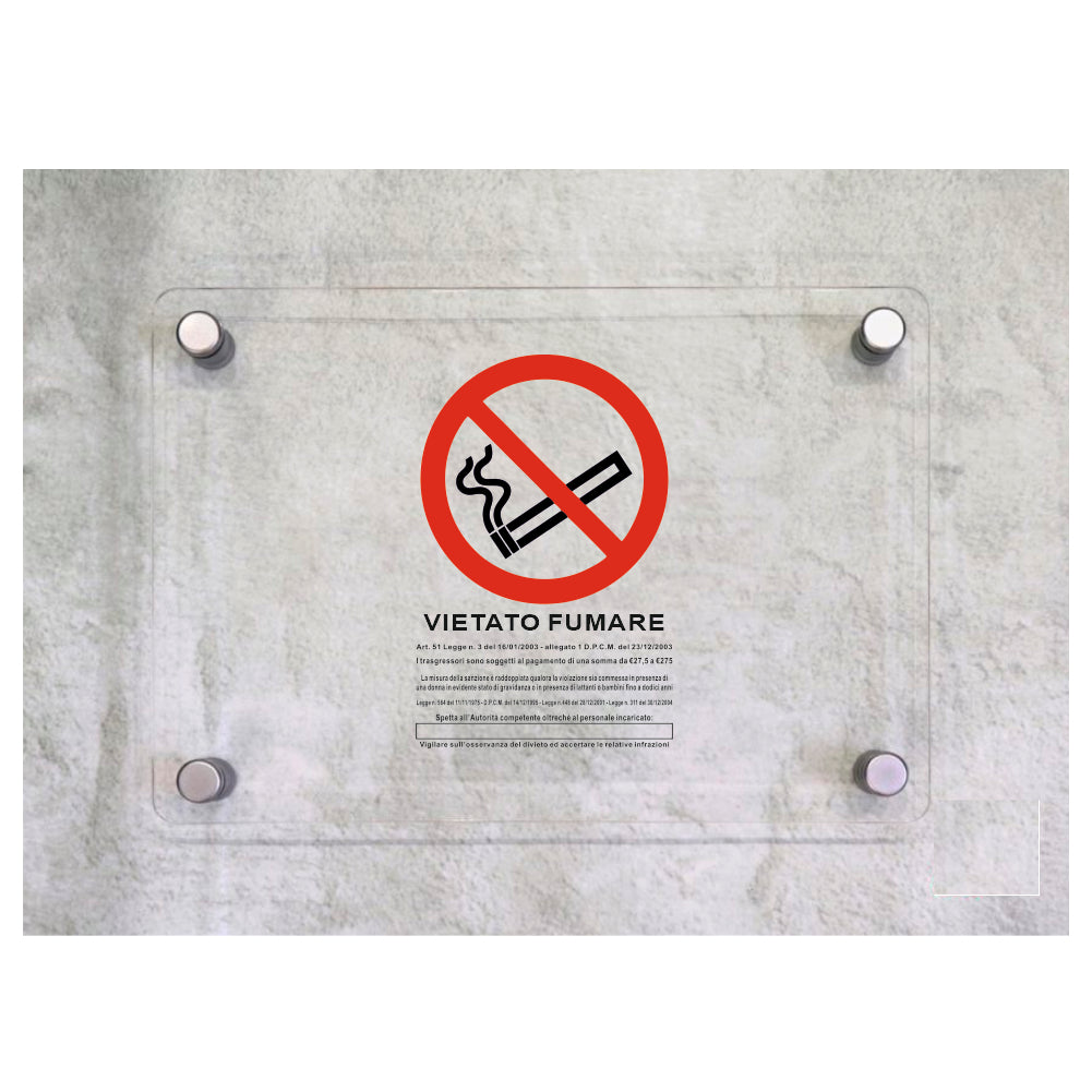 Global Targa Cartello in plexiglass - VIETATO FUMARE - LEGGE E SANZIONI MOD2 VERTICALE - Con Distanziali in acciaio inox, Stampa UV
