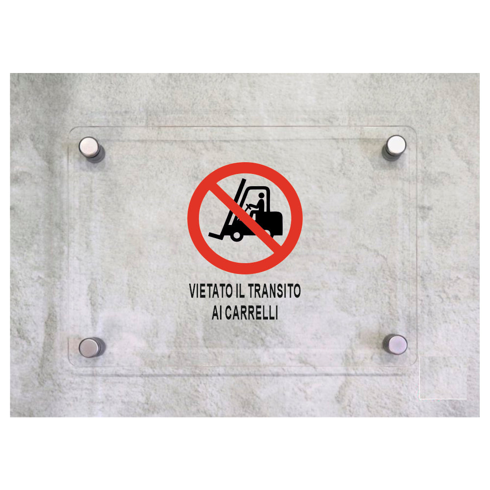 Global Targa Cartello in plexiglass - VIETATO IL TRANSITO AI CARRELLI VERTICALE - Con Distanziali in acciaio inox, Stampa UV