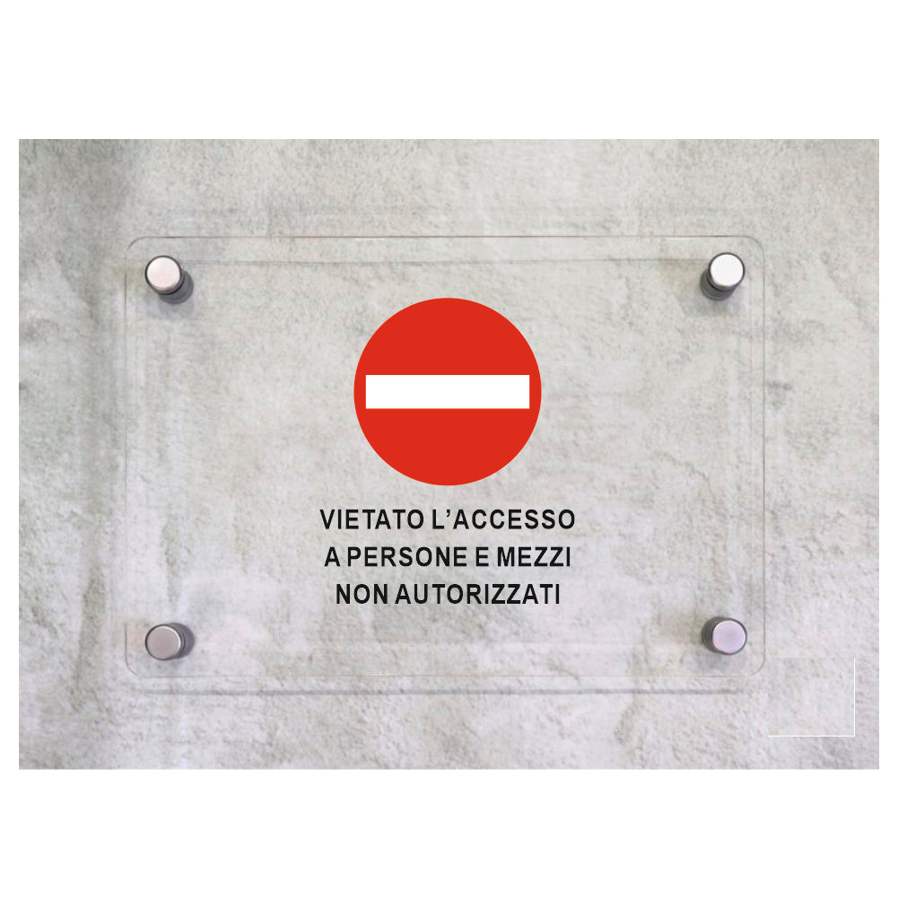 Global Targa Cartello in plexiglass - VIETATO L'ACCESSO A PERSONE E MEZZI NON AUTORIZZATI VERTICALE - Con Distanziali in acciaio inox, Stampa UV