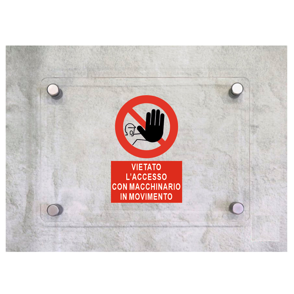 Global Targa Cartello in plexiglass - VIETATO L'ACCESSO CON MACCHINARIO IN MOVIMENTO VERTICALE - Con Distanziali in acciaio inox, Stampa UV
