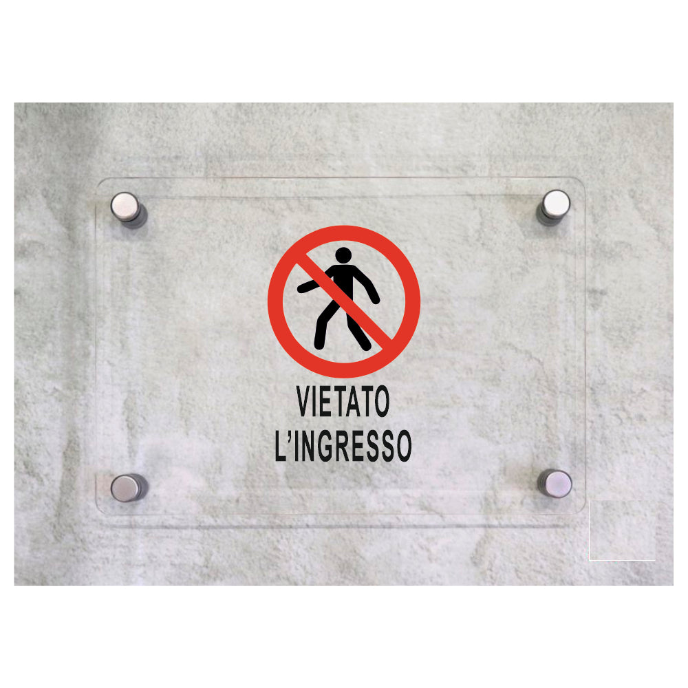 Global Targa Cartello in plexiglass - VIETATO L'INGRESSO MOD 2 VERTICALE - Con Distanziali in acciaio inox, Stampa UV