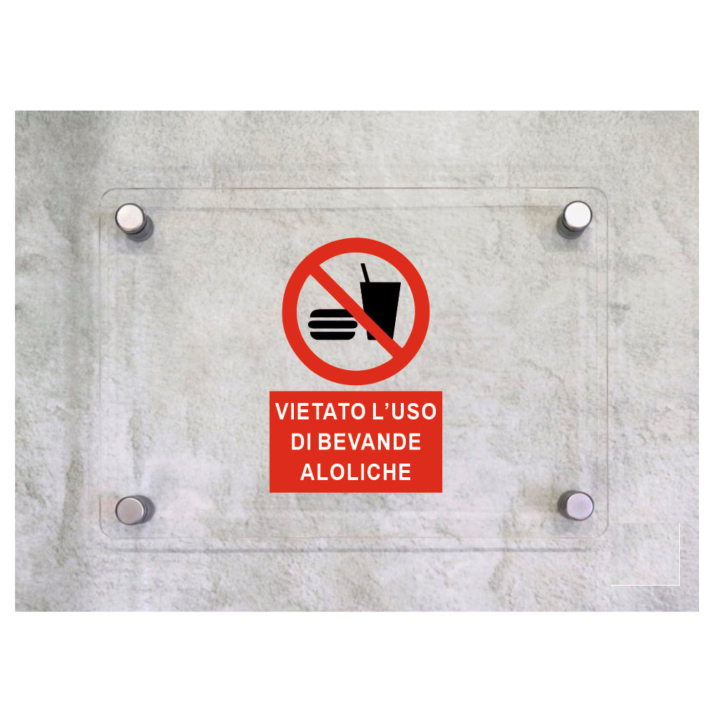 Global Targa Cartello in plexiglass - VIETATO L'USO DI BEVANDE ALCOLICHE VERTICALE - Con Distanziali in acciaio inox, Stampa UV