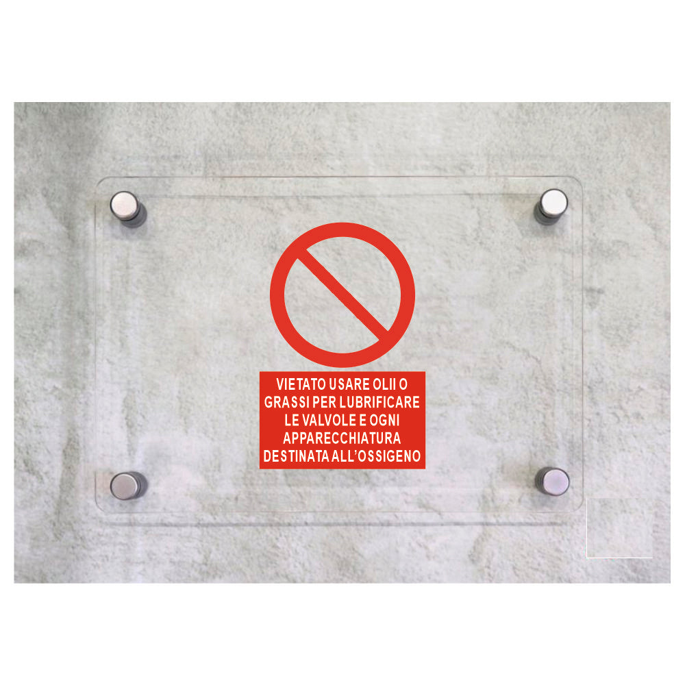 Global Targa Cartello in plexiglass - VIETATO USARE OLII O GRASSI PER LUBRIFICARE LE VALVOLE - Con Distanziali in acciaio inox, Stampa UV