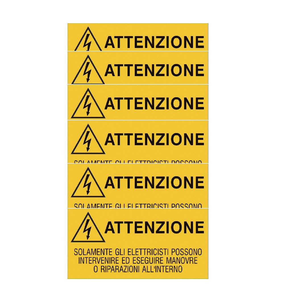 KIT DI 6 ADESIVI - Attenzione - Solamente gli elettricisti possono intervenire - Pittogramma ISO 7010 Con Stampa Diretta U.V. (IDEALE ANCHE PER ESTERNO)