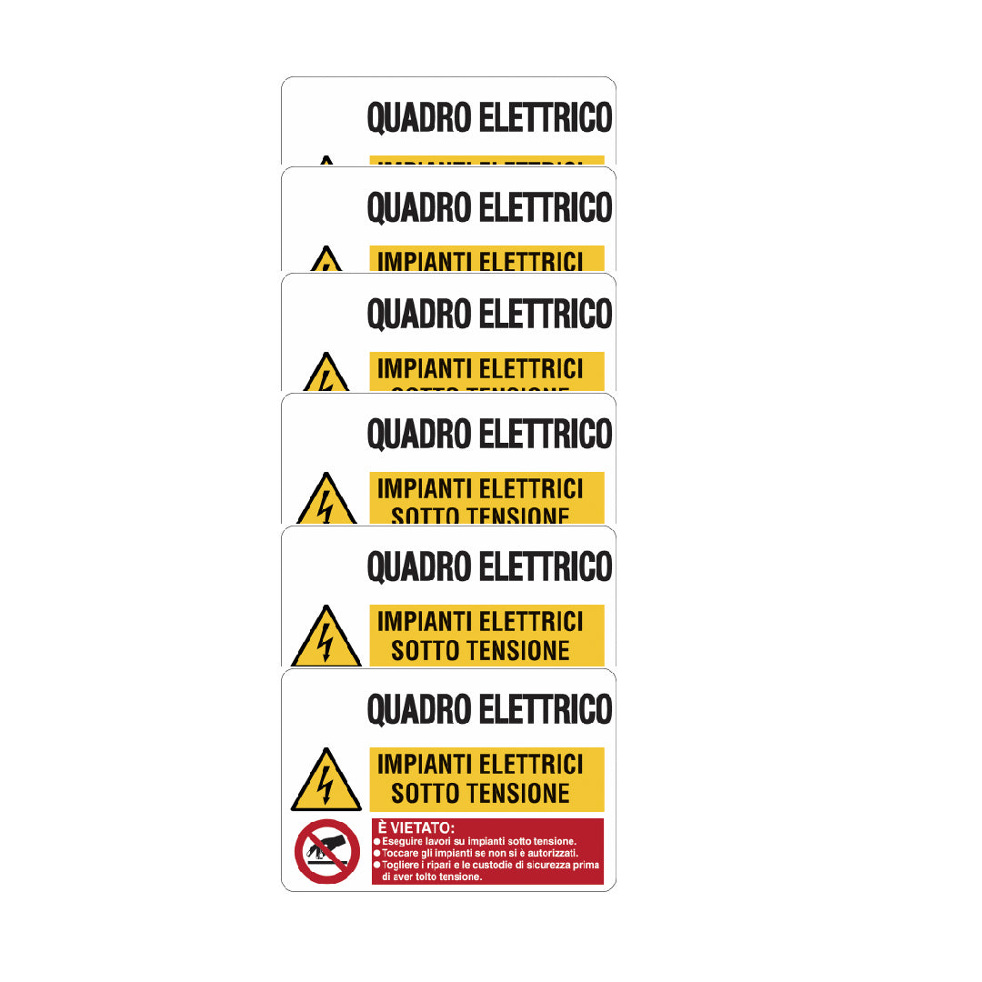 KIT DI 6 ADESIVI -Quadro elettrico - Impianti elettrici sotto tensione- Pittogramma ISO 7010 Con Stampa Diretta U.V. (IDEALE ANCHE PER ESTERNO)