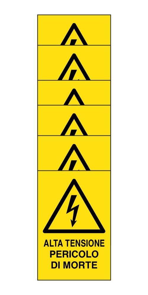 KIT DI 6 ADESIVI RETTANGOLARI - alta tensione pericolo di morte - Pittogramma ISO 7010 Con Stampa Diretta U.V. (IDEALE ANCHE PER ESTERNO)