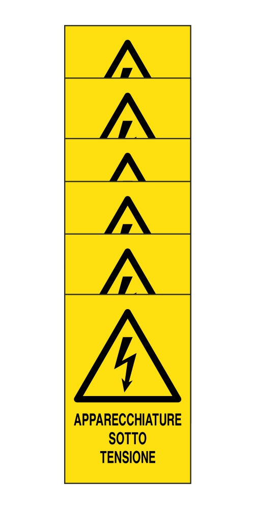KIT DI 6 ADESIVI RETTANGOLARI - apparecchiature sotto tensione - Pittogramma ISO 7010 Con Stampa Diretta U.V. (IDEALE ANCHE PER ESTERNO)