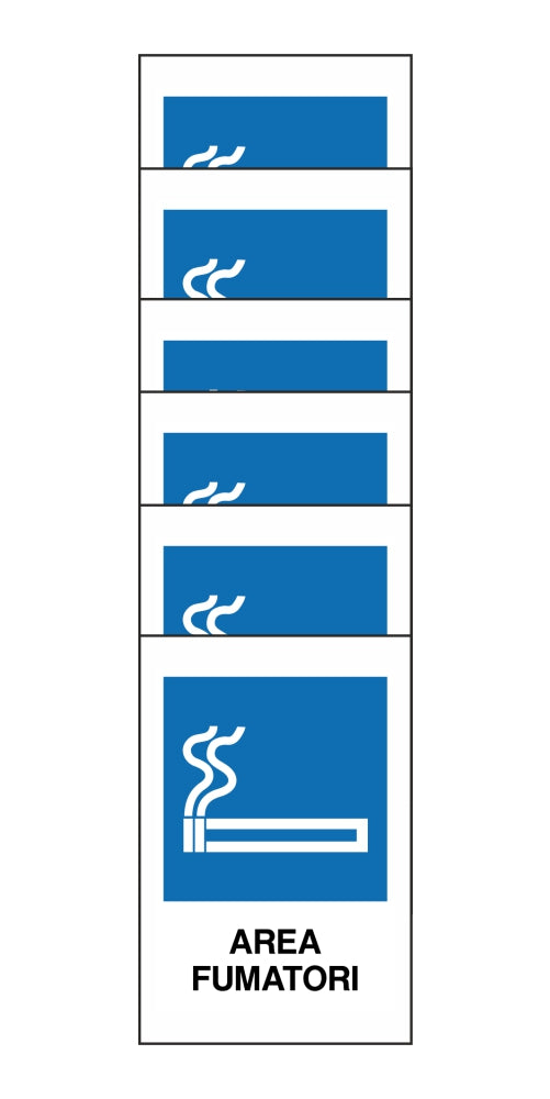 KIT DI 6 ADESIVI RETTANGOLARI - area fumatori - Pittogramma ISO 7010 Con Stampa Diretta U.V. (IDEALE ANCHE PER ESTERNO)
