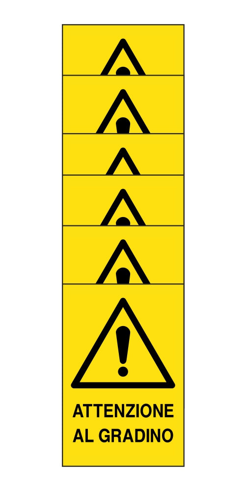 KIT DI 6 ADESIVI RETTANGOLARI - ATTENZIONE AL GRADINO - Pittogramma ISO 7010 Con Stampa Diretta U.V. (IDEALE ANCHE PER ESTERNO)