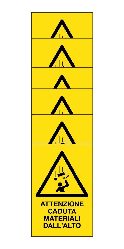 KIT DI 6 ADESIVI RETTANGOLARI - attenzione caduta materiali dall'alto - Pittogramma ISO 7010 Con Stampa Diretta U.V. (IDEALE ANCHE PER ESTERNO)