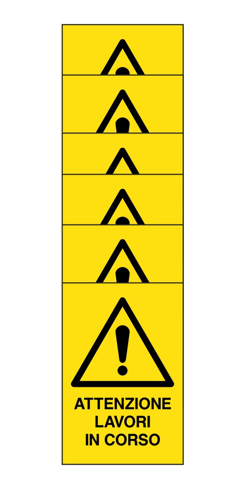 KIT DI 6 ADESIVI RETTANGOLARI - attenzione lavori in corso - Pittogramma ISO 7010 Con Stampa Diretta U.V. (IDEALE ANCHE PER ESTERNO)