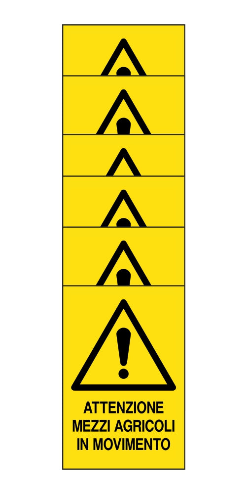KIT DI 6 ADESIVI RETTANGOLARI - ATTENZIONE MEZZI AGRICOLI IN MOVIMENTO - Pittogramma ISO 7010 Con Stampa Diretta U.V. (IDEALE ANCHE PER ESTERNO)