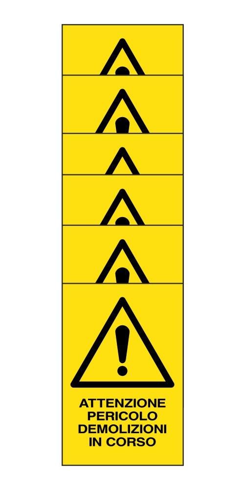 KIT DI 6 ADESIVI RETTANGOLARI - attenzione pericolo demolizioni in corso - Pittogramma ISO 7010 Con Stampa Diretta U.V. (IDEALE ANCHE PER ESTERNO)