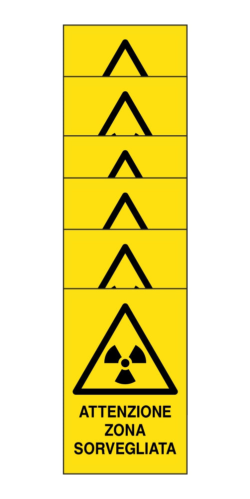 KIT DI 6 ADESIVI RETTANGOLARI - attenzione zona sorvegliata - Pittogramma ISO 7010 Con Stampa Diretta U.V. (IDEALE ANCHE PER ESTERNO)