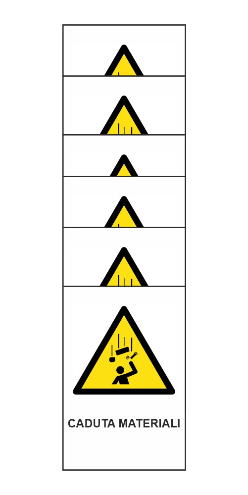 KIT DI 6 ADESIVI RETTANGOLARI - CADUTA MATERIALI - Pittogramma ISO 7010 Con Stampa Diretta U.V. (IDEALE ANCHE PER ESTERNO)