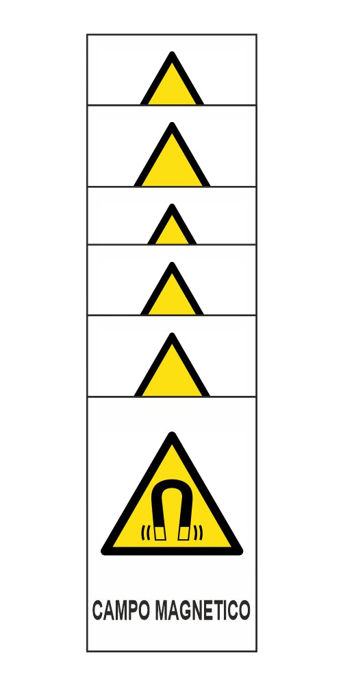 KIT DI 6 ADESIVI RETTANGOLARI - CAMPO MAGNETICO - Pittogramma ISO 7010 Con Stampa Diretta U.V. (IDEALE ANCHE PER ESTERNO)