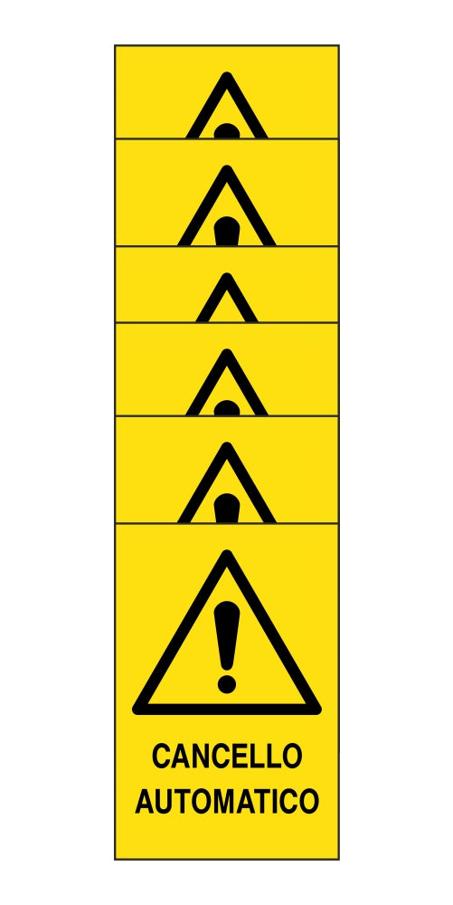 KIT DI 6 ADESIVI RETTANGOLARI - CANCELLO AUTOMATICO - Pittogramma ISO 7010 Con Stampa Diretta U.V. (IDEALE ANCHE PER ESTERNO)