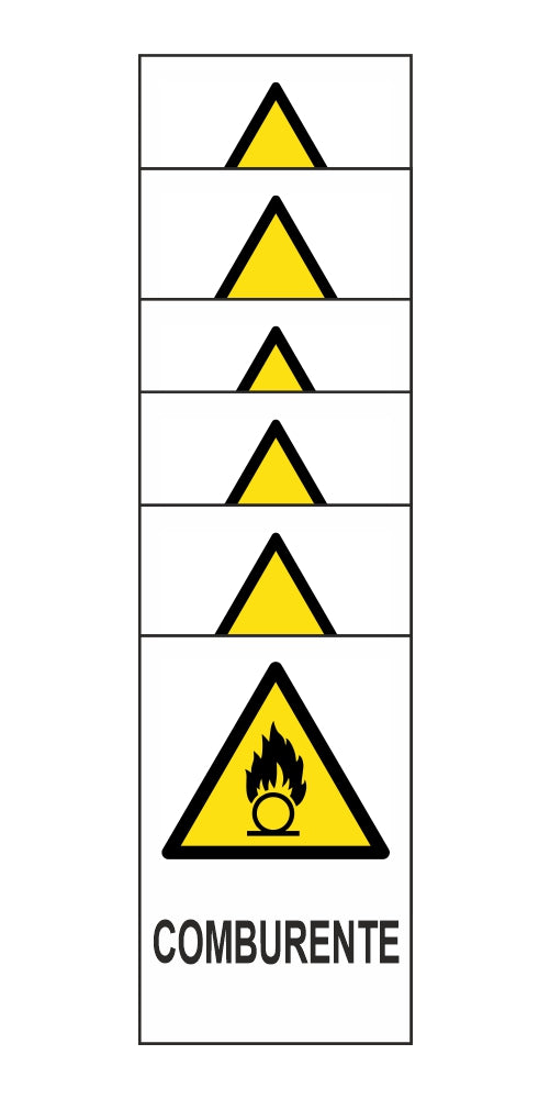 KIT DI 6 ADESIVI RETTANGOLARI - COMBURENTE - Pittogramma ISO 7010 Con Stampa Diretta U.V. (IDEALE ANCHE PER ESTERNO)