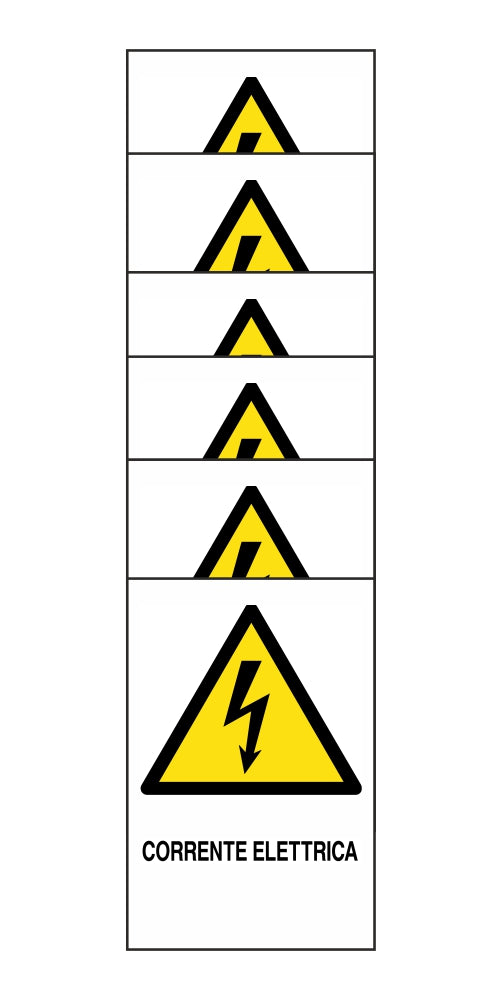 KIT DI 6 ADESIVI RETTANGOLARI - CORRENTE ELETTRICA - Pittogramma ISO 7010 Con Stampa Diretta U.V. (IDEALE ANCHE PER ESTERNO)