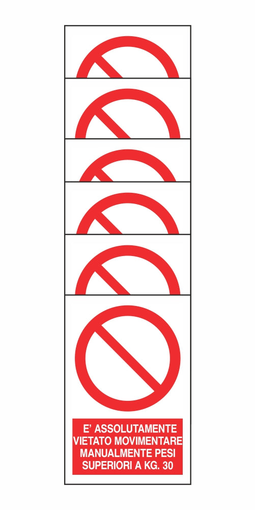 KIT DI 6 ADESIVI RETTANGOLARI - È ASSOLUTAMENTE VIETATO MOVIMENTARE MANUALMENTE PESI MAGGIORI DI 30 KG. - Pittogramma ISO 7010 Con Stampa Diretta U.V. (IDEALE ANCHE PER ESTERNO)