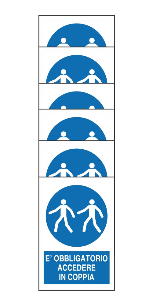 KIT DI 6 ADESIVI RETTANGOLARI - E' OBBLIGATORIO ACCEDERE IN COPPIA - Pittogramma ISO 7010 Con Stampa Diretta U.V. (IDEALE ANCHE PER ESTERNO)